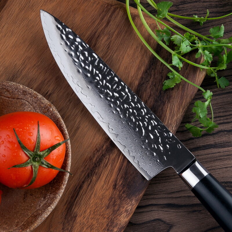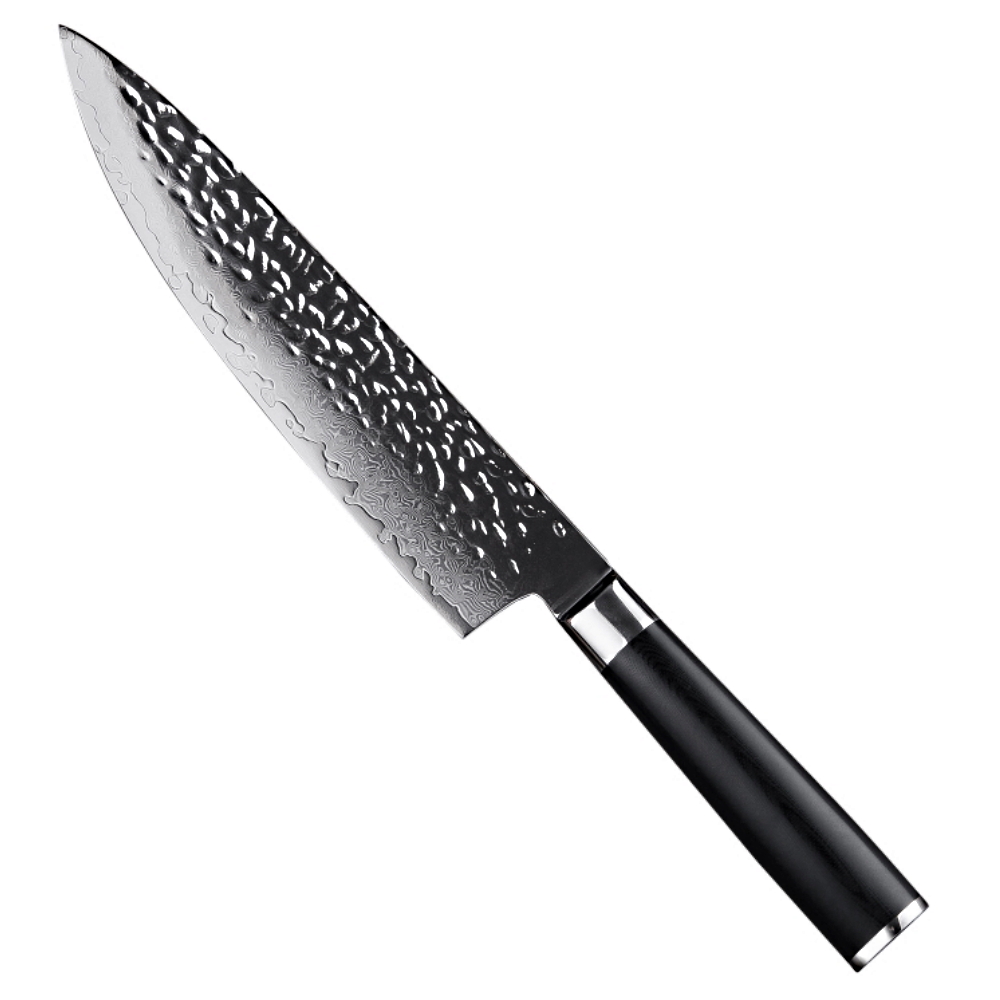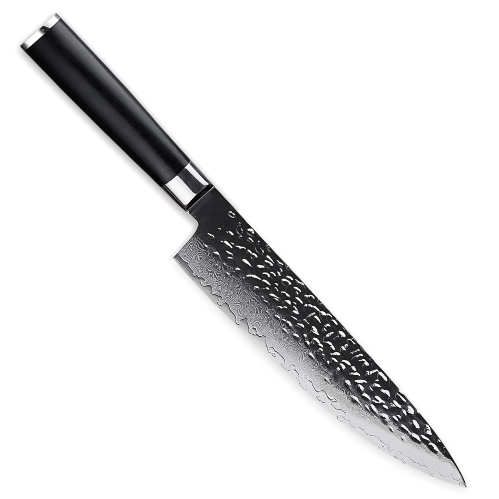 Hardened with cryogenic nitrogen cooling process, this blade is solid with an incredible 60+ on the Rockwell hardness scale. Clad on each side by 33 layers of Damascus stainless steel.