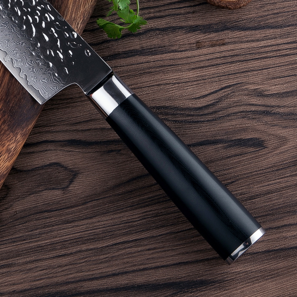 Military grade ergonomic G-10 handle is immune to cold, heat, and moisture. The bolster allows easy access to sharpen the entire blade down to the blade heel.