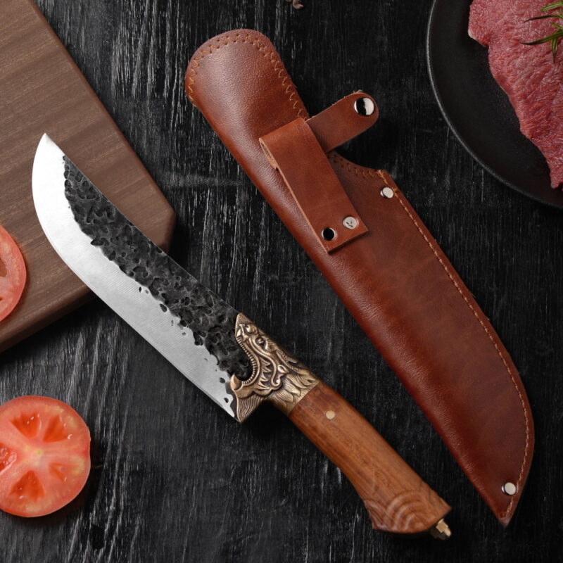This butcher chef knife is made of high quality high carbon steel.All processes made with mechanical ways.The knife can be used as camping knife.
