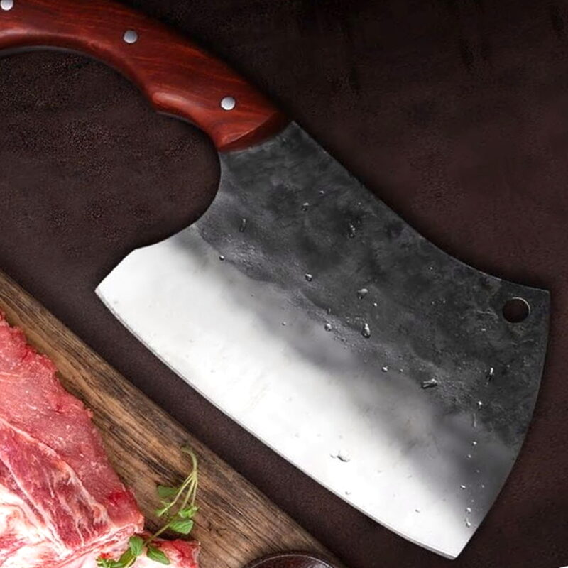 This is a hand forged CLEAVER from high carbon steel,designed for chopping, mincing, slicing, and dicing.